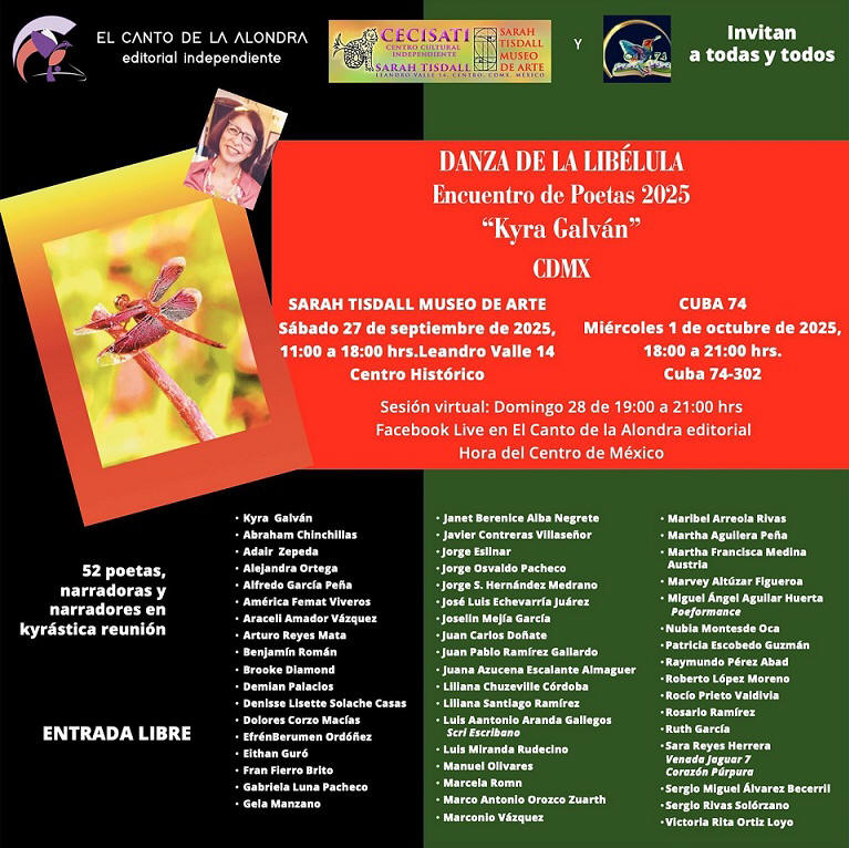 Lorena Ortiz Lanzagorta, Pterocles Arenarius, Patricia Sanabria, Guillermo Martínez de Llano, I. César Cruz I.+, Fanny Reyes, Saúl Ibargoyen y Francisco Barrios.