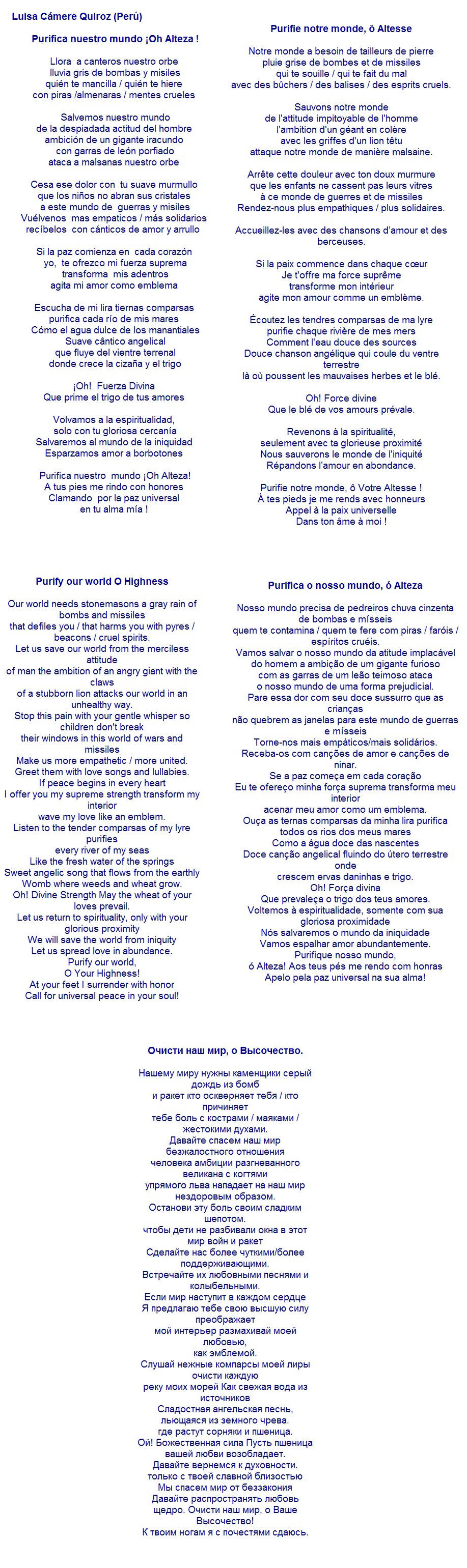 Purifica nuestro mundo ¡oh, Alteza!